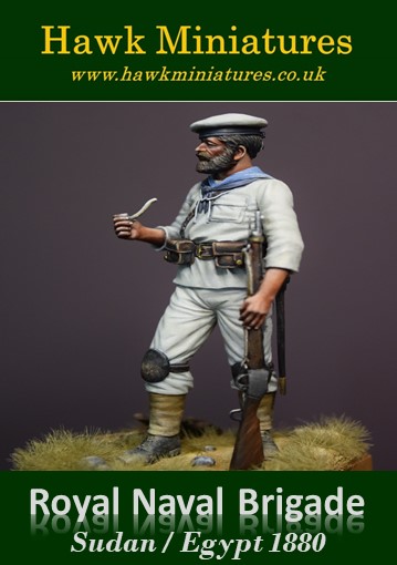 Royal Naval Brigade (Whites) Sudan Campaign 1880Hawk Miniatures presents a 75mm Scale figure of a Royal Naval Brigade (Whites), from Sudan Campaign of 1880.Manufacturer: Hawk Miniatures Availability: Out of stockSKU: AB/13w £28.95 Qty: Add to cart Custom wishlist OKAdd to wishlistEmail a friendRoyal Naval Brigade (Whites)Sudan Campaign 1880 Hawk Miniatures presents a 75mm Scale figure of a Royal Naval Brigade rating in the summer white uniform from the Sudan Campaign of 1880. Sculpted By : Alan Ball Original Painted By : Eddy Vandersteen Scale : 75mm Figure Kit Details The kit comes as a mulit part resin kit and depicts a full figure of a Royal Naval Brigade rating in the summer white uniform from the Sudan Campaign of 1880.The figure is 75mm in scale and is supplied unmade and unpainted.The kit requires assembly and is not suitable for children under the age of 12.Any groundwork shown in the pictures was provided by the artist and is not included within the kit.Products specificationsAttribute nameAttribute valueConditionNewScale75mmProduct tags British (58), 75mm (38), Sudan (7), Alan Ball (36)Related products Royal Engineer, Sudan Campaign 1880AB/11Hawk Miniatures presents a 75mm Scale figure of a Royal Engineer, from Sudan Campaign of 1880.£28.95Add to cart Custom wishlist OKAdd to wishlist Royal Artillery, Sudan Campaign 1880AB/12Hawk Miniatures presents a 75mm Scale figure of a Royal Artillery, from Sudan Campaign of 1880.£28.95 Royal Naval Brigade (Blues) Sudan Campaign 1880AB/13bHawk Miniatures presents a 75mm Scale figure of a Royal Naval Brigade (Blues), from Sudan Campaign of 1880.£28.95 Guards Camel Corps, Sudan Campaign 1880AB/14Hawk Miniatures presents a 75mm Scale figure of a Guard Camel Corps rider from Sudan Campaign of 1880.£28.95Add to cart Custom wishlist OKAdd to wishlist Sudan 1880 Campaign SetAB/15Hawk Miniatures presents a 75mm Scale figure set representing vaious services from Sudan Campaign of 1880.£79.95Add to cart Custom wishlist OKAdd to wishlist