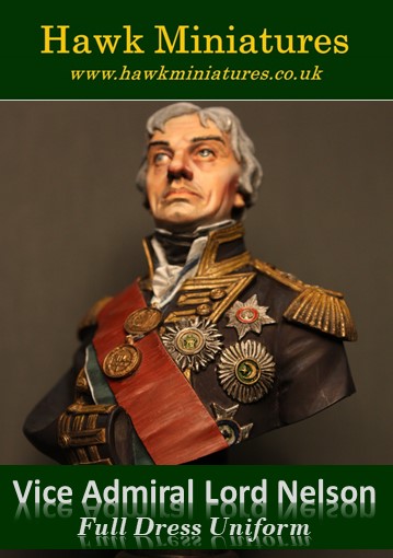 Vice Admiral Horatio Lord Nelson,1805, BustHawk Miniatures presents a 1/12th fine scale model bust kit of Vice Admiral Horatio Lord Nelson, in full dress uniform.Manufacturer: Hawk Miniatures Availability: 10 in stockSKU: DFG/03 £24.95 Qty: Add to cart Custom wishlist OKAdd to wishlistEmail a friendVice Admiral Horatio Lord NelsonFull Dress 1805Hawk Miniatures is proud to present a 1/12th fine scale model bust kit of Vice Admiral Horatio Lord Nelson, in full dress uniform.Sculpted By: David F GrieveOriginal Painted By: Eddy VandersteenScale: 1/12th BustKit DetailsThe set is a multi-part bust kit depicting Vice Admiral Horatio Lord Nelson in full dress uniform.The figure is 1/12th in scale and supplied unmade and unpainted.The kit requires assembly and is not suitable for children under 12.The artist provided the groundwork shown in the pictures and has not included it in the kit.Products specificationsAttribute nameAttribute valueConditionNewScale1/12thProduct tags Napoleonic (22), British (35), 1/12 (2), Bust (3)